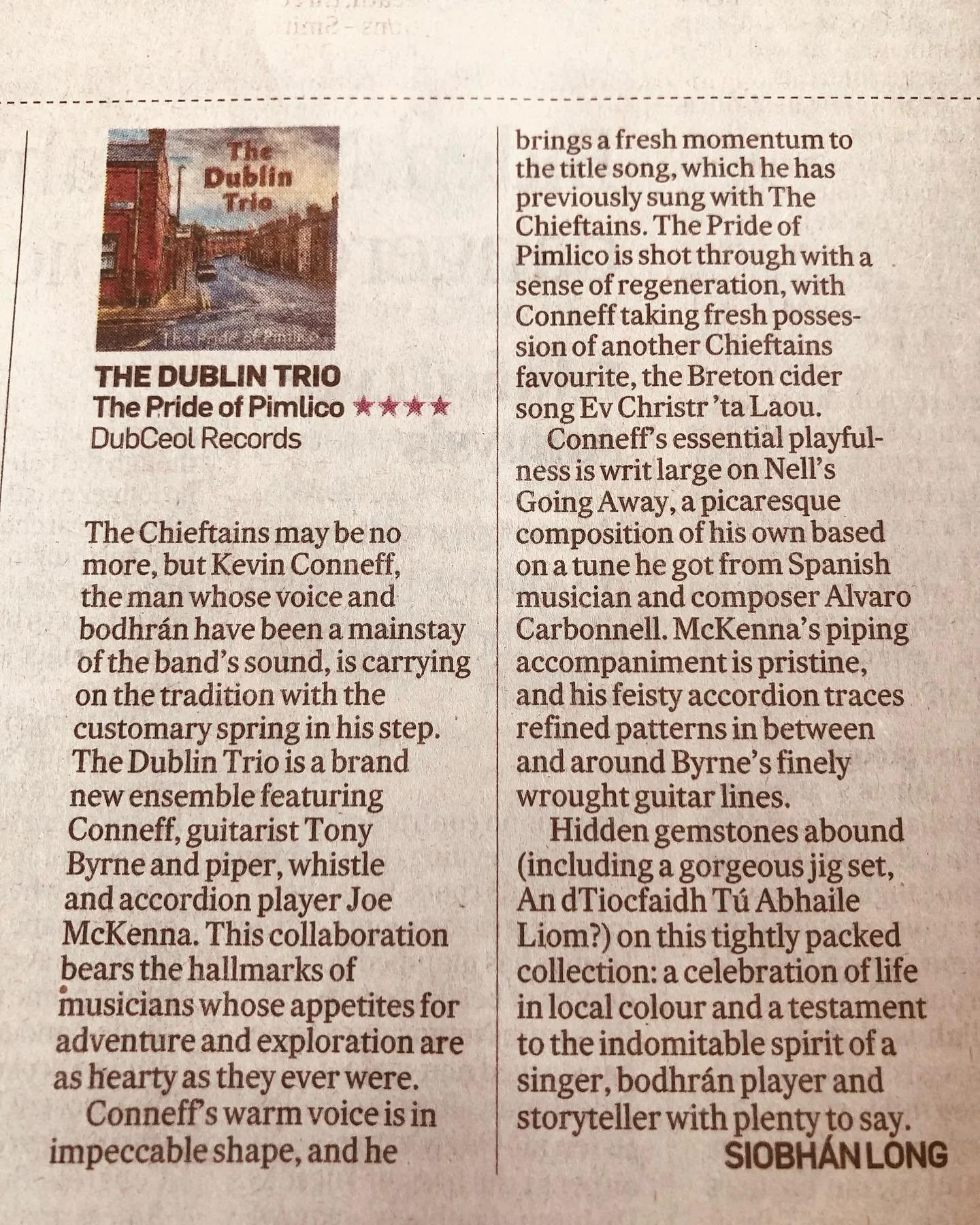 The Dublin Trio is a brand new ensemble featuring Conneff, guitarist Tony Byrne, and piper, whistle, and accordion player Joe McKenna.